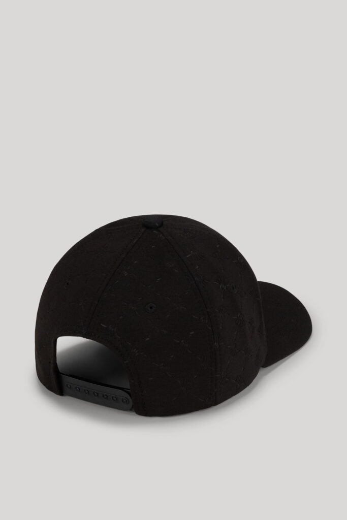 Vācu modes zīmola Joop! vīriešu beisbola stila cepure melnā krāsā. Izgatavota no blīva un elastīga viskozes maisījuma materiāla ar grafisku rudzupuķu rakstu. Papildināta ar metāla logo plāksnītes akcentu un regulējamu klipšu aizdari mugurpusē.