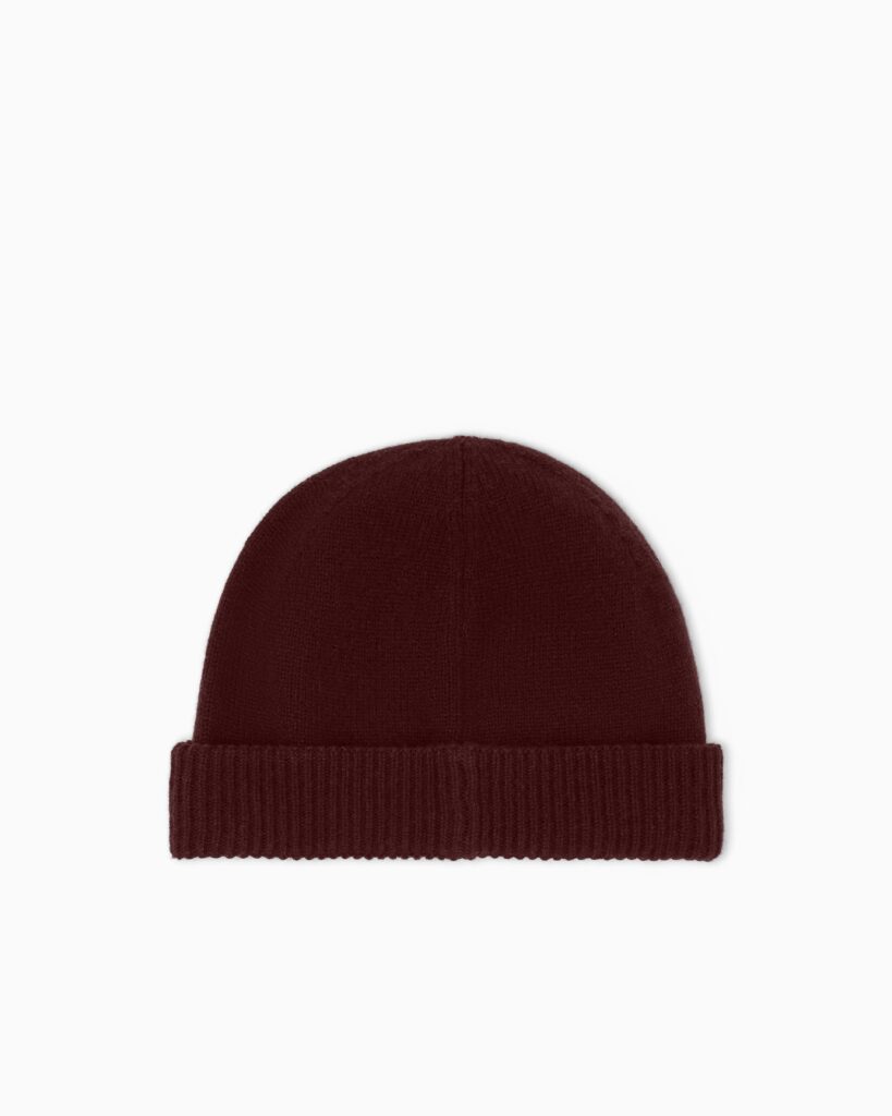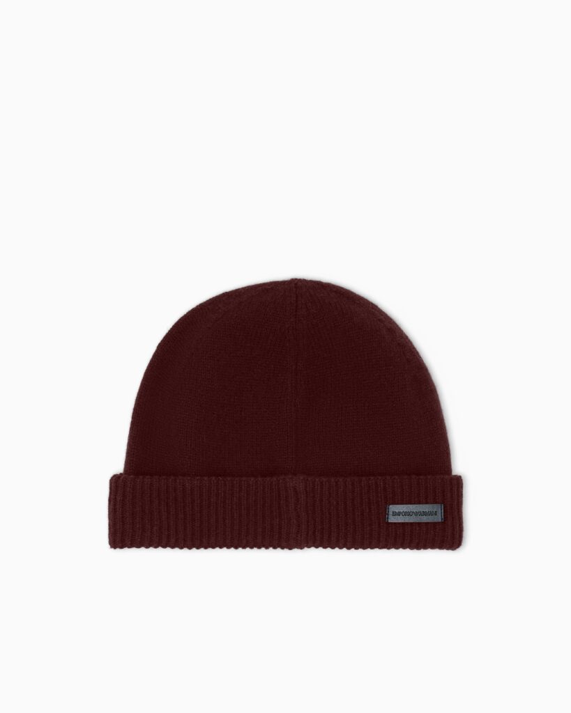 Itāļu luksusa zīmola Emporio Armani adīta vīriešu cepure sarkanbrūnā krāsā. Izgatavota no 100% kašmira dzijas. Papildināta ar smalki rievotu atloku un zīmola logotipa emblēmu.