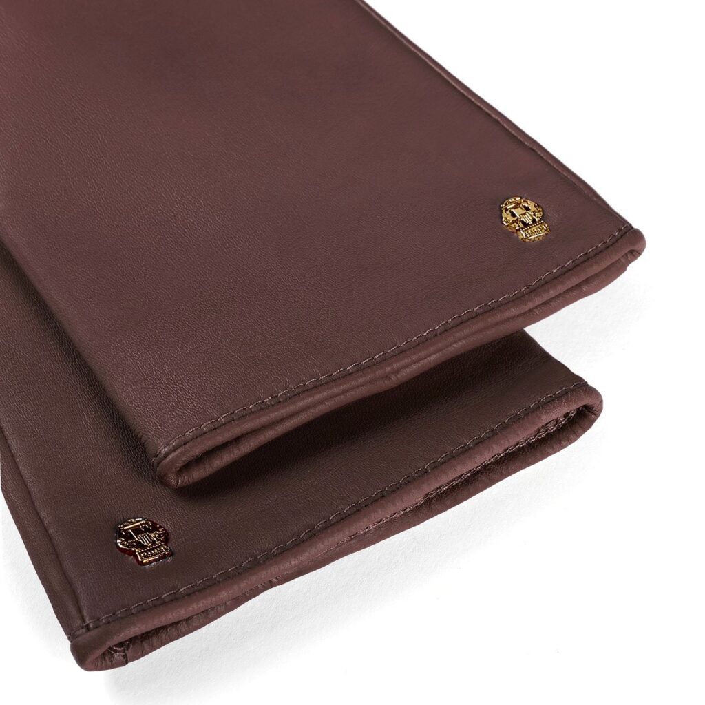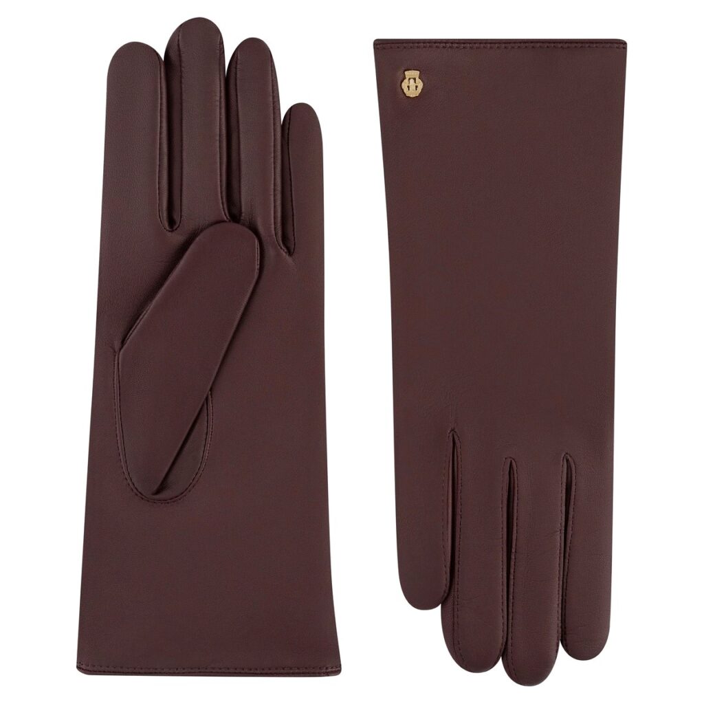 Vācu zīmola Roeckl sieviešu cimdi tumšā bordo tonī ar siltu vilnas un kašmira oderi. Izgatavoti no gludas augstākās kvalitātes dabīgās ādas. Papildināti ar smalku zīmola logotipa akcentu.