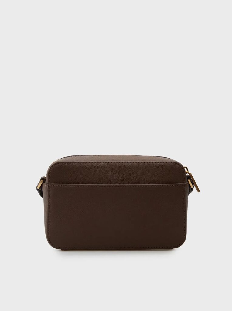 Brūna ādas somiņa ar zelta krāsas detaļām