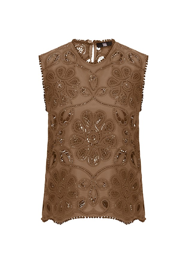 • Elastīgs kokvilnas tops ar fliteru apdari priekšpusē