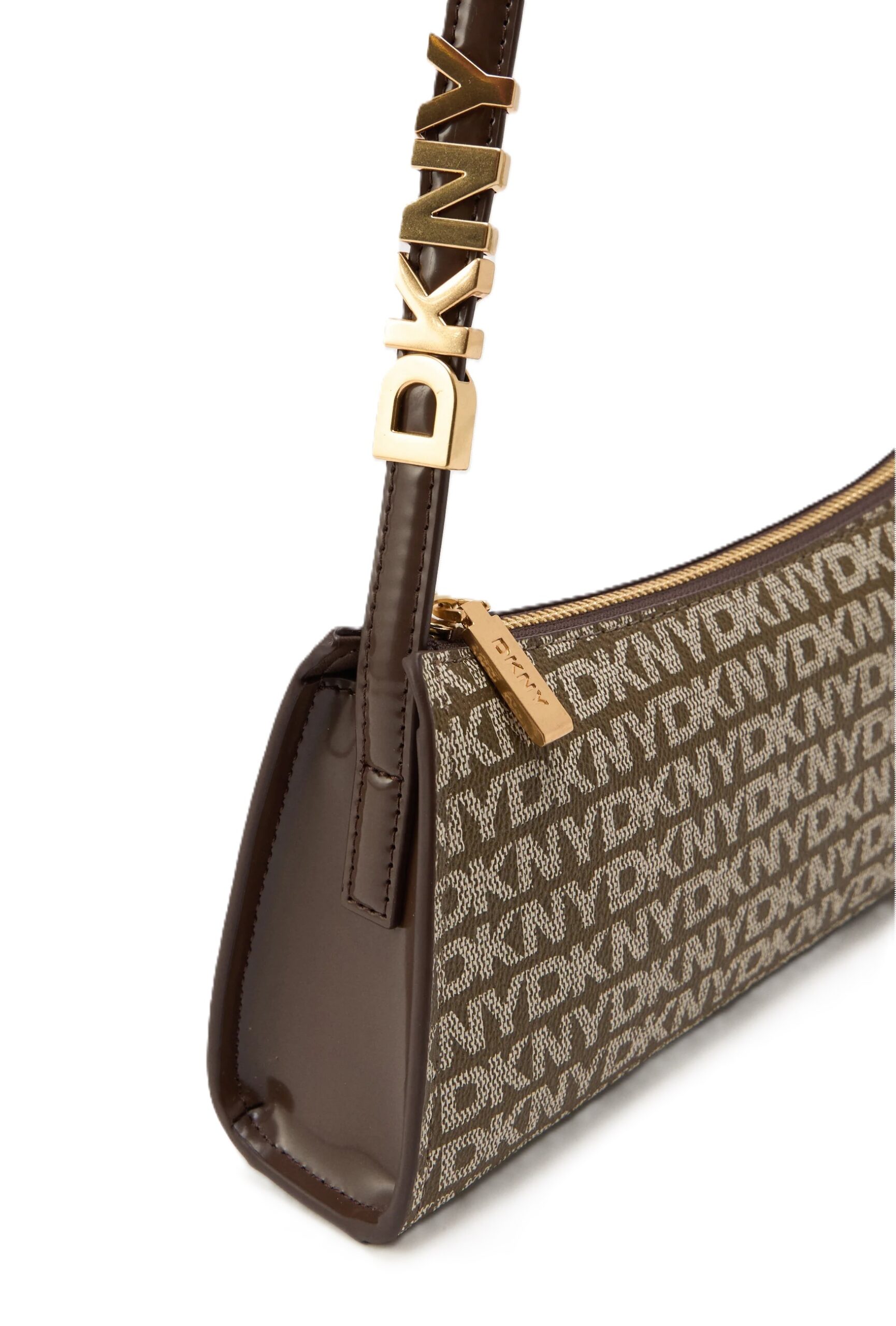 Rokassomiņa ar logo rakstu un zelta krāsas detaļām