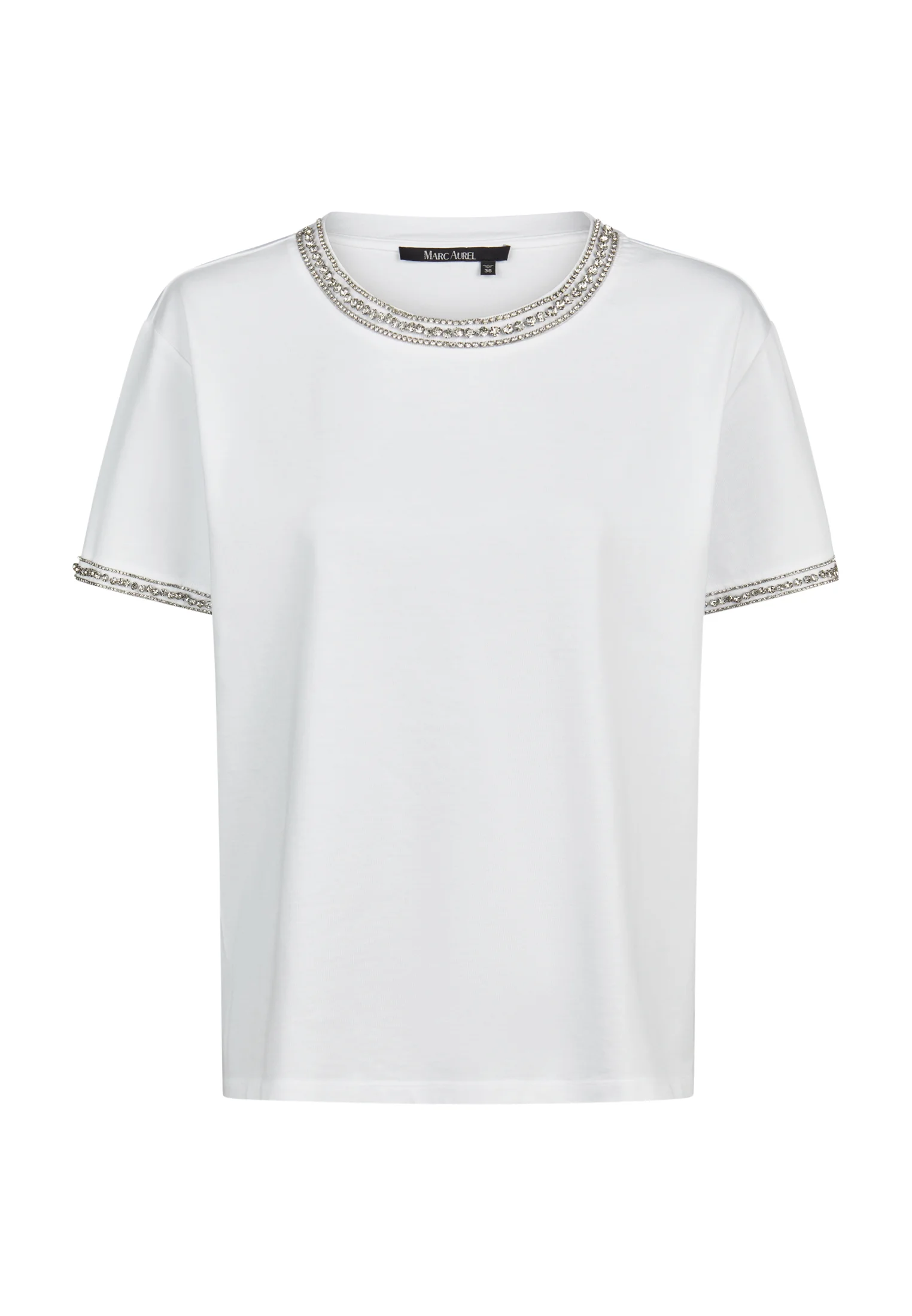 T-krekls ar greznu akcentu uz uzrakstu mugurpusē