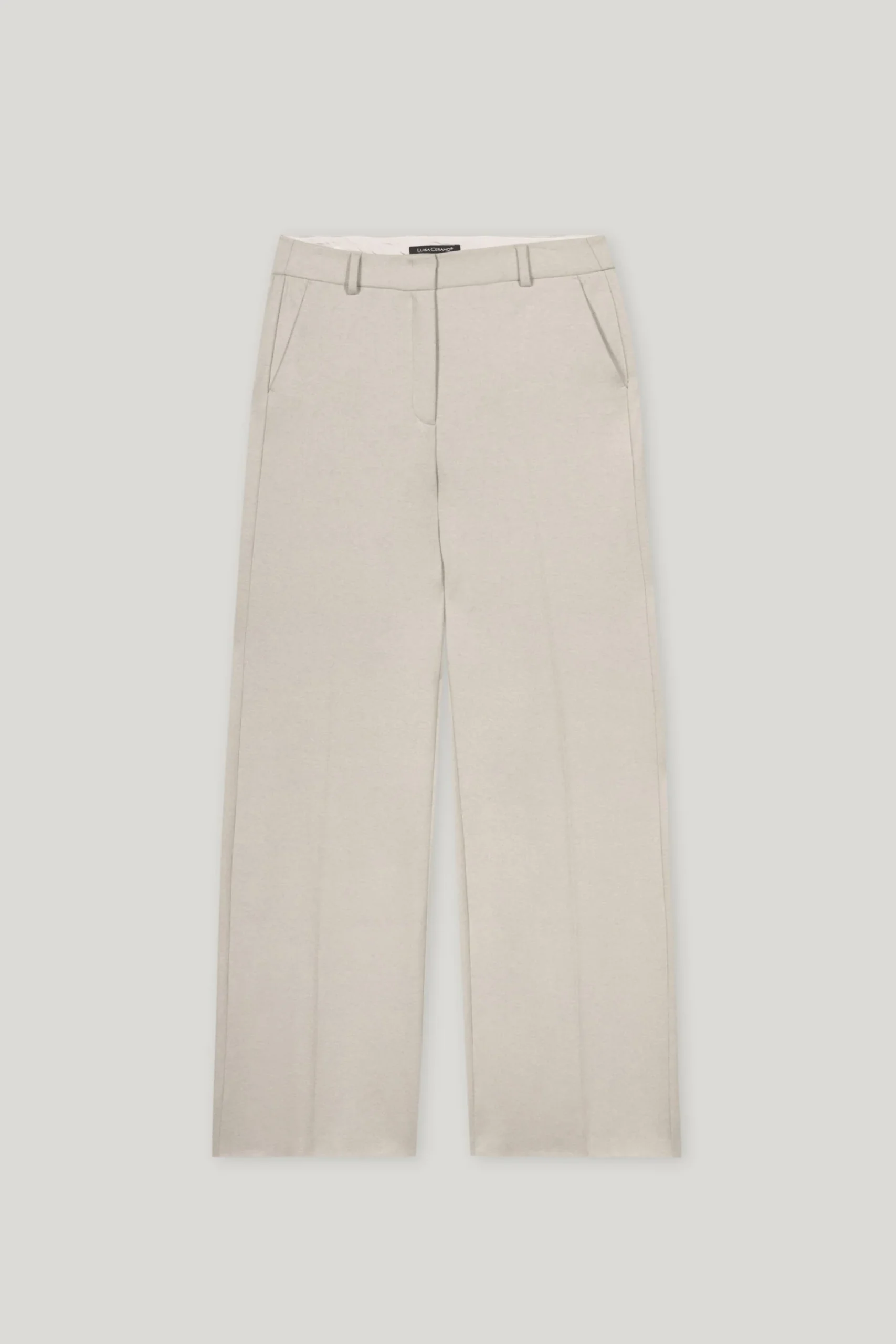 Gaiši pelēkbēšas plata piegriezuma bikses sievietēm