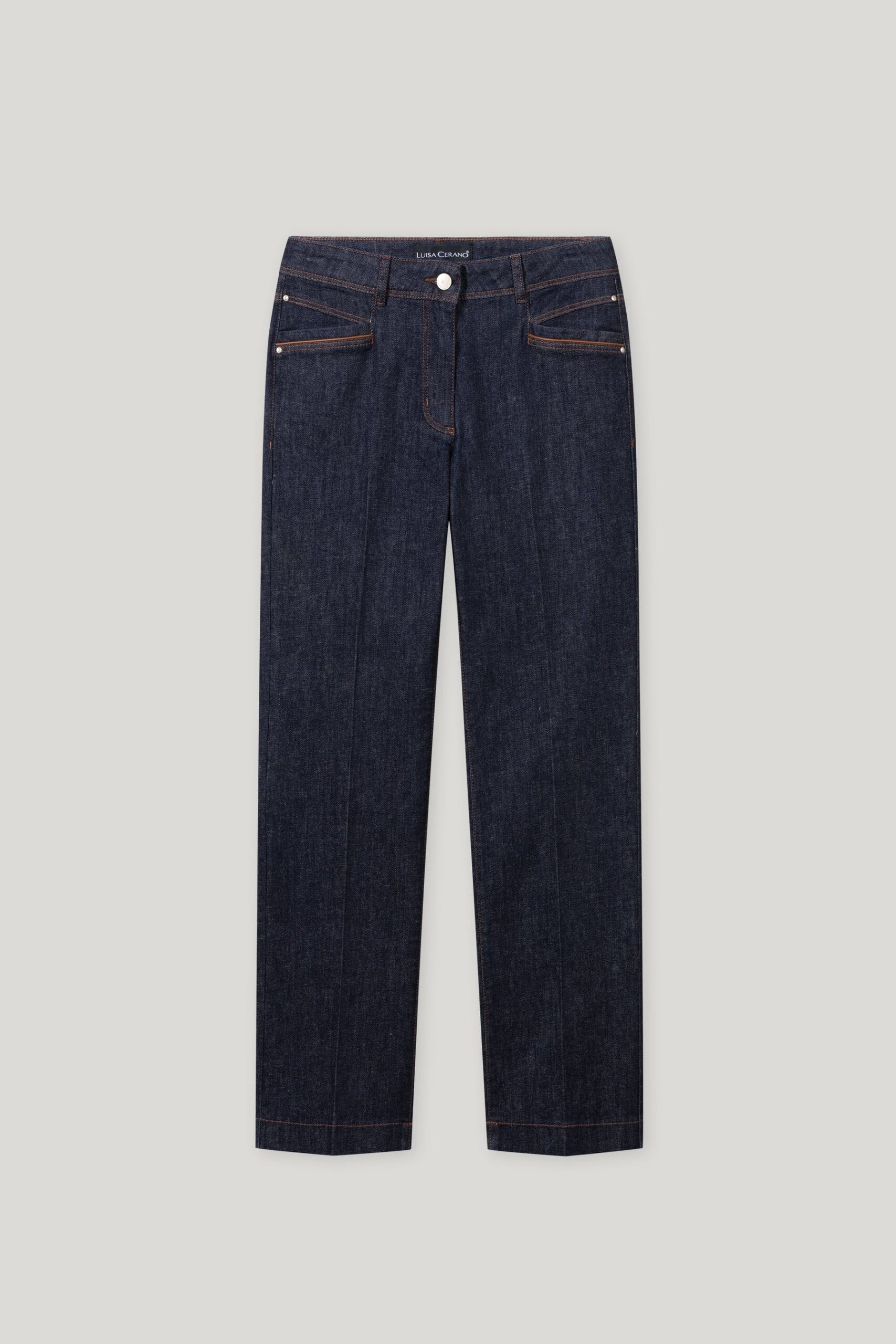 Taisna pieriezuma džinsi ar kontrastējošiem akcentiem
