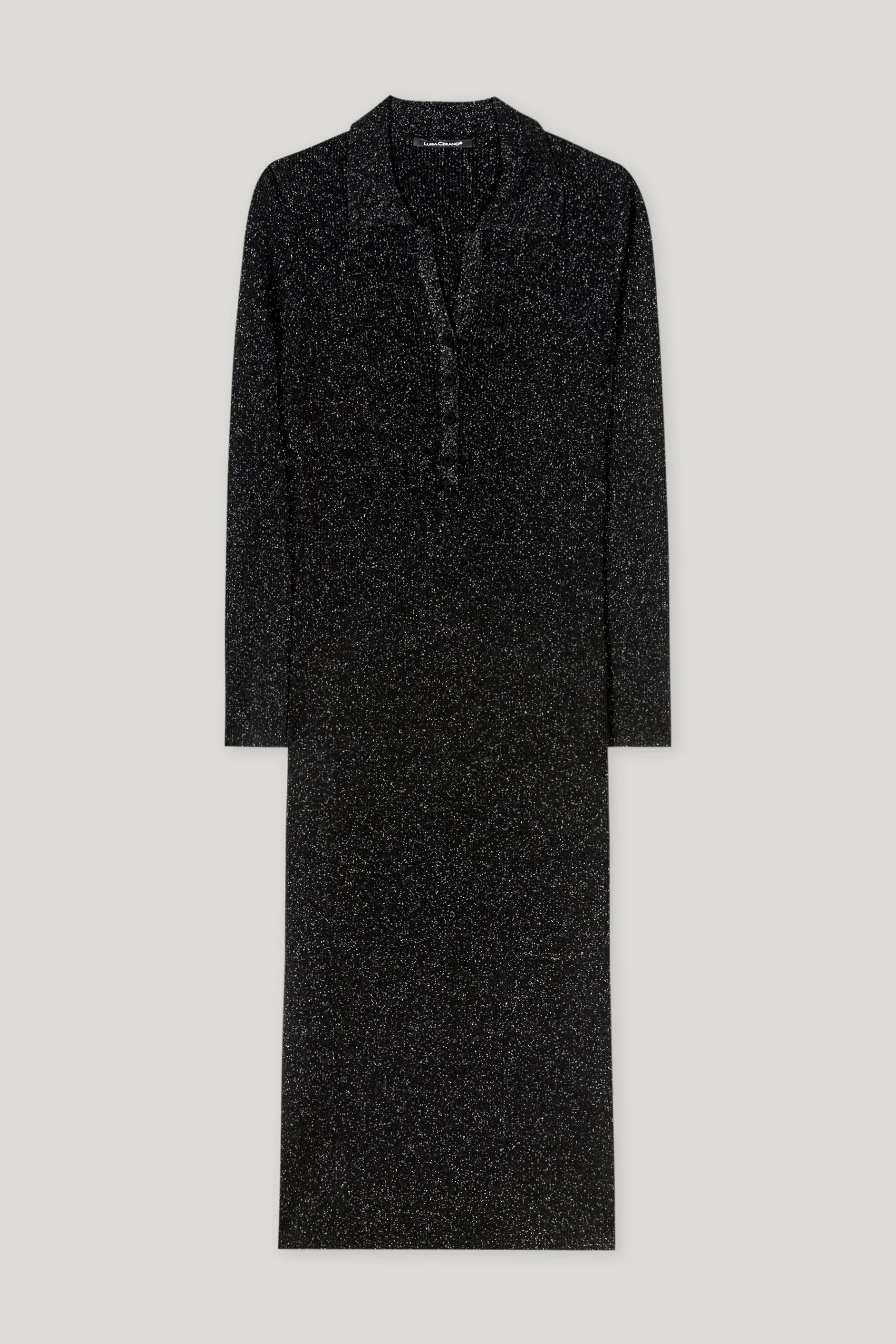 Rievota adījuma kleita ar mirdzumu, melna