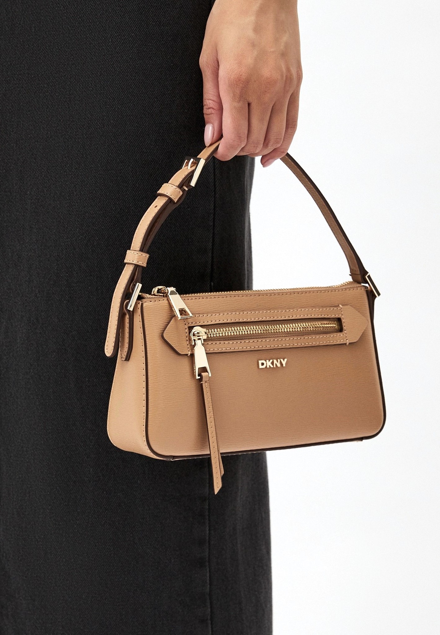 Smilšu brūna rokassomiņa ar noņemamu plecu siksnu