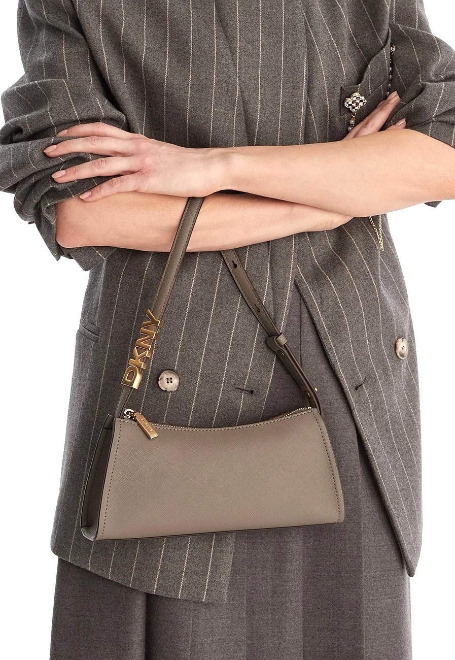 Pelēkbrūna rokassomiņa ar zelta krāsas detaļām
