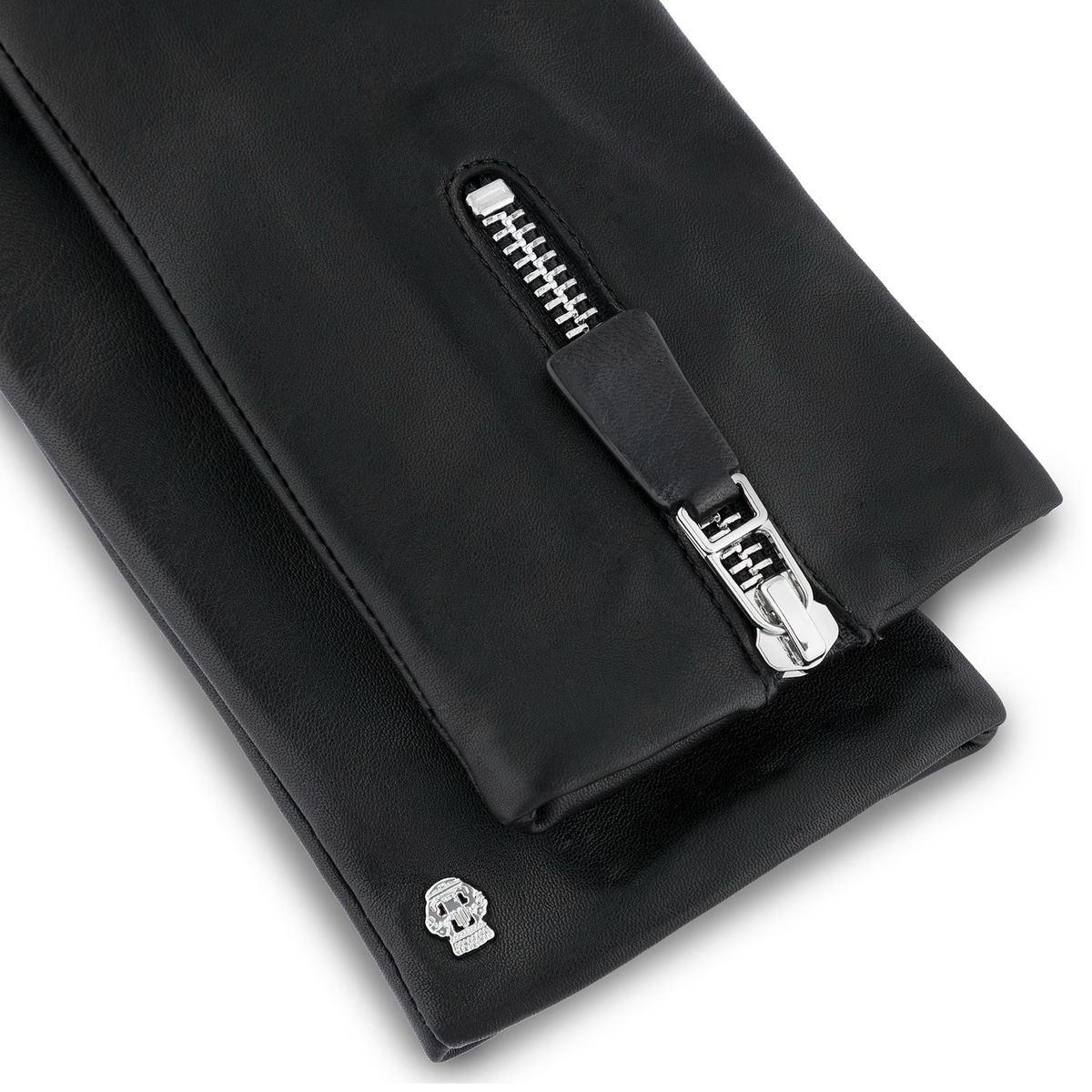 Melni ādas cimdi ar rāvējslēdzi un vilnas oderi