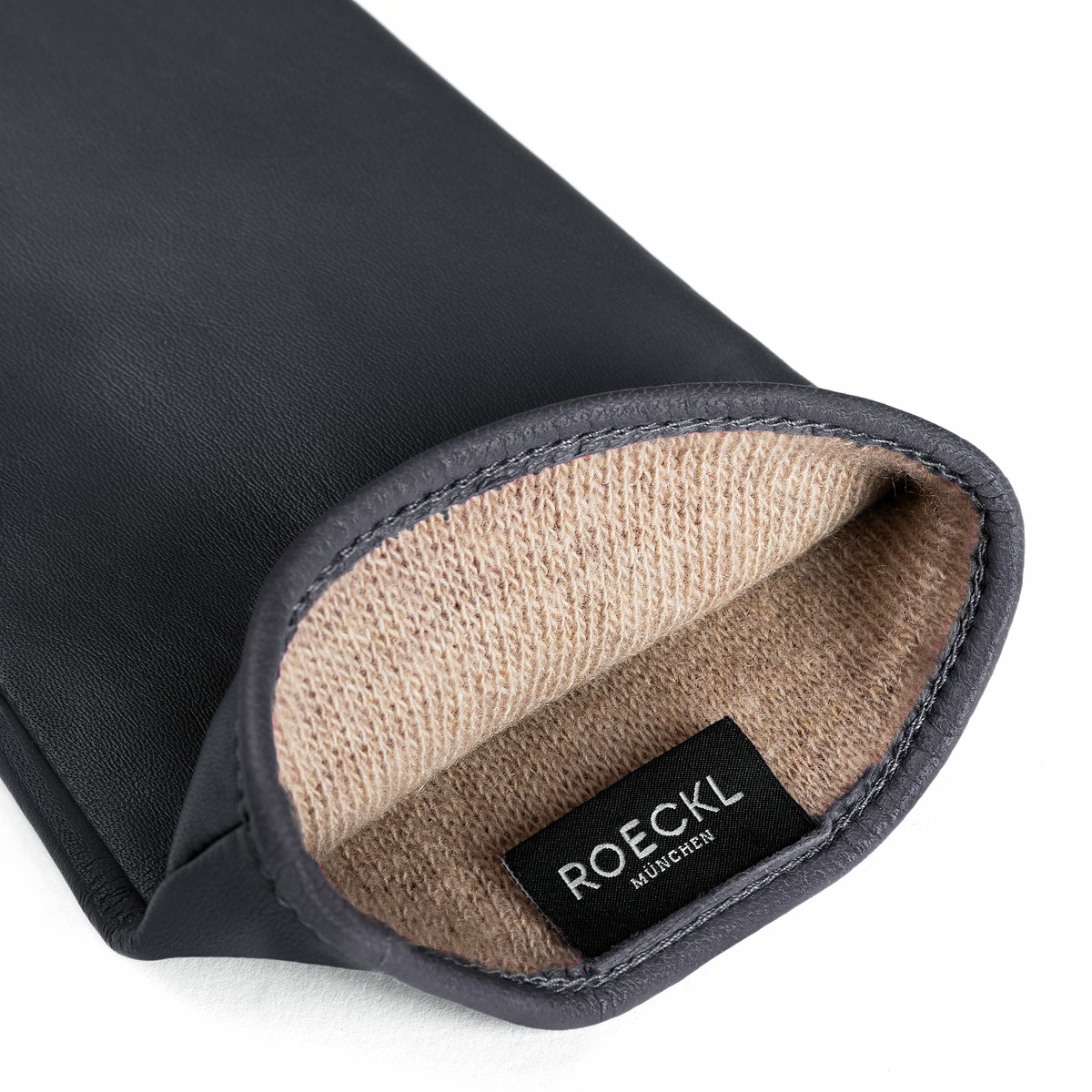 Pagarināti ādas cimdi ar kašmira oderi, melni