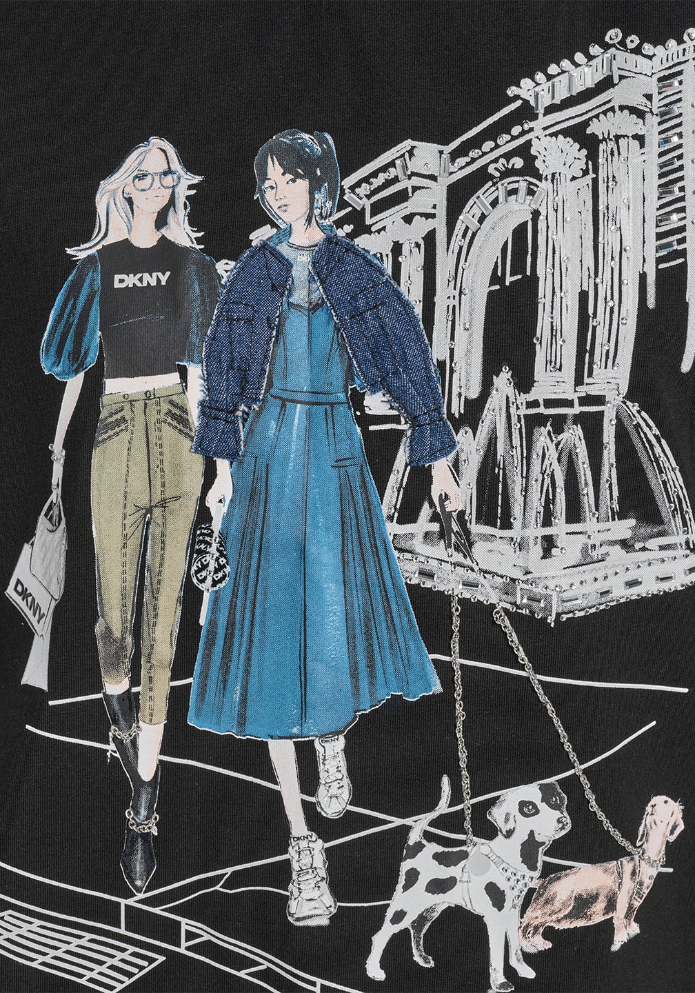 Melns T-krekls ar attēlu un mirdzošu apdari