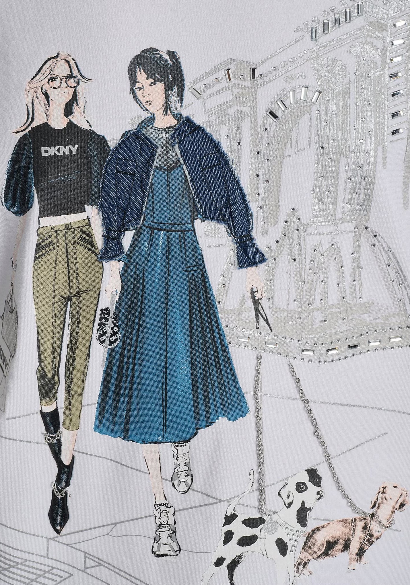 Balts T-krekls ar attēlu un mirdzošu apdari