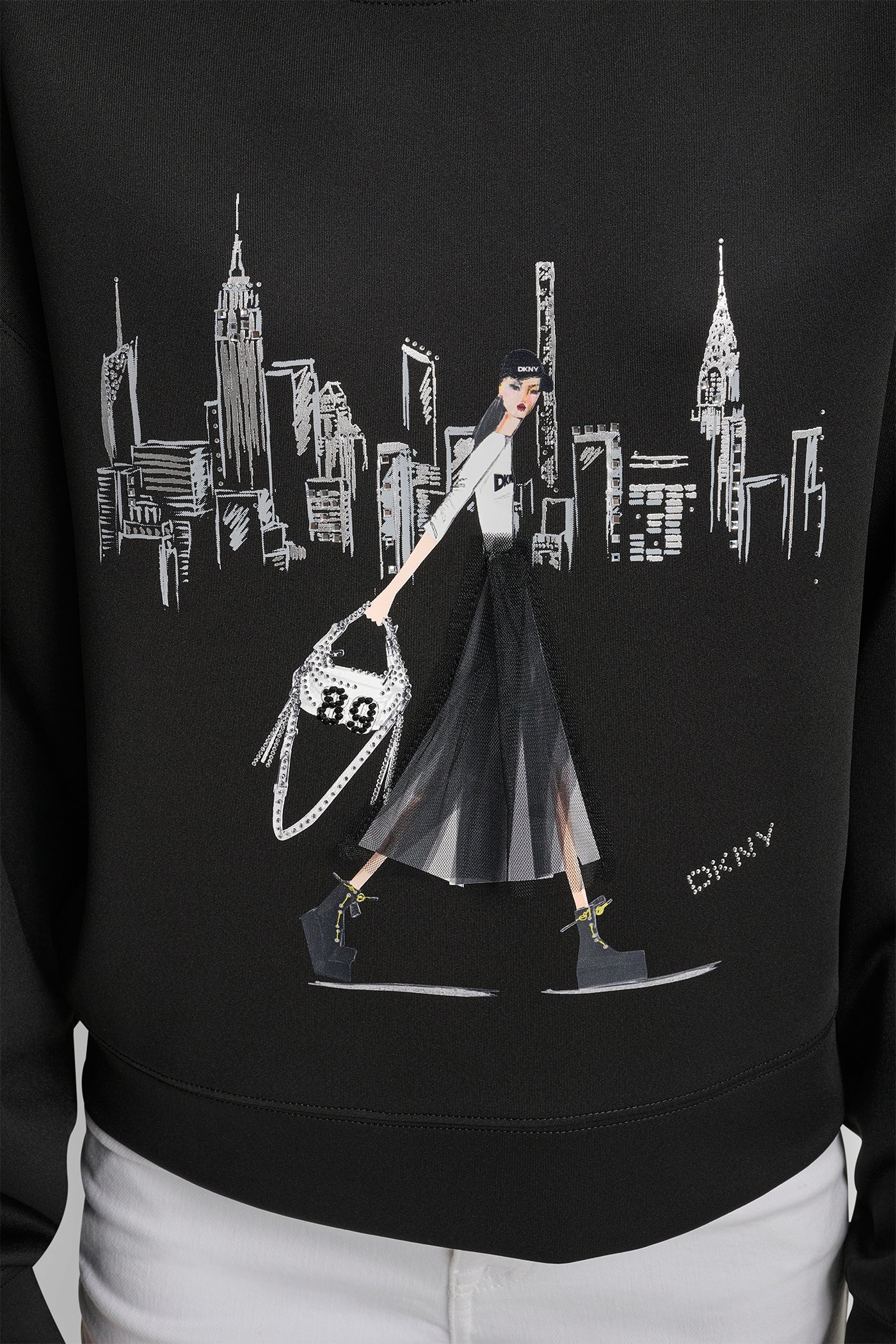 Melns T-krekls ar attēlu un mirdzošu apdari