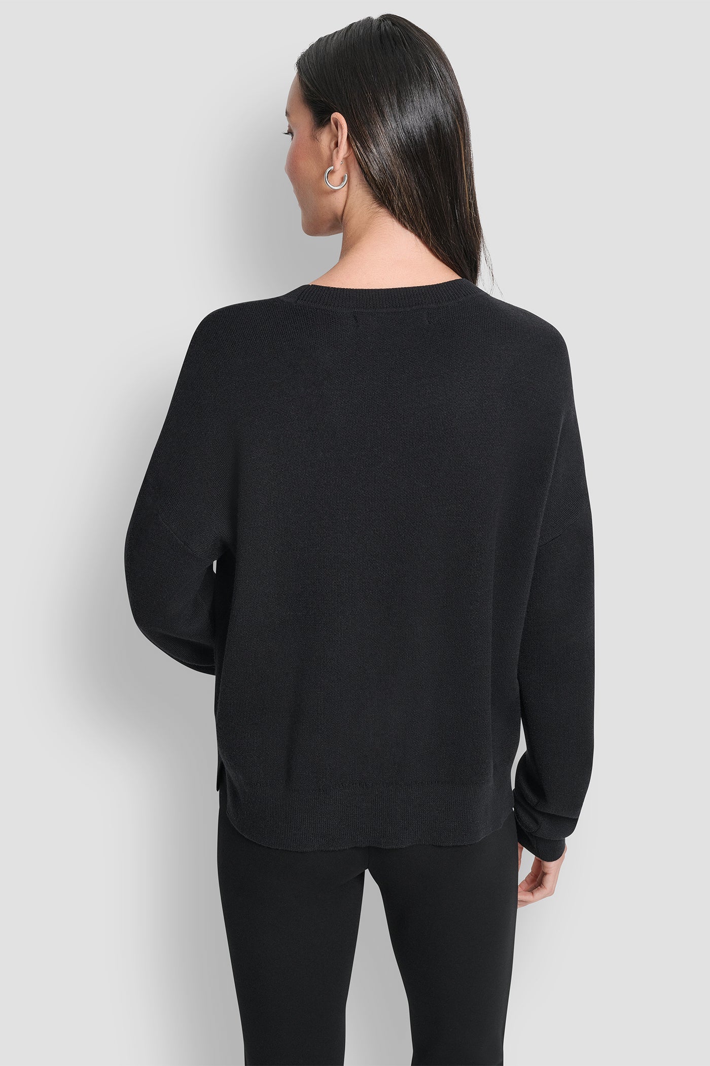 Melns T-krekls ar attēlu un mirdzošu logotipu