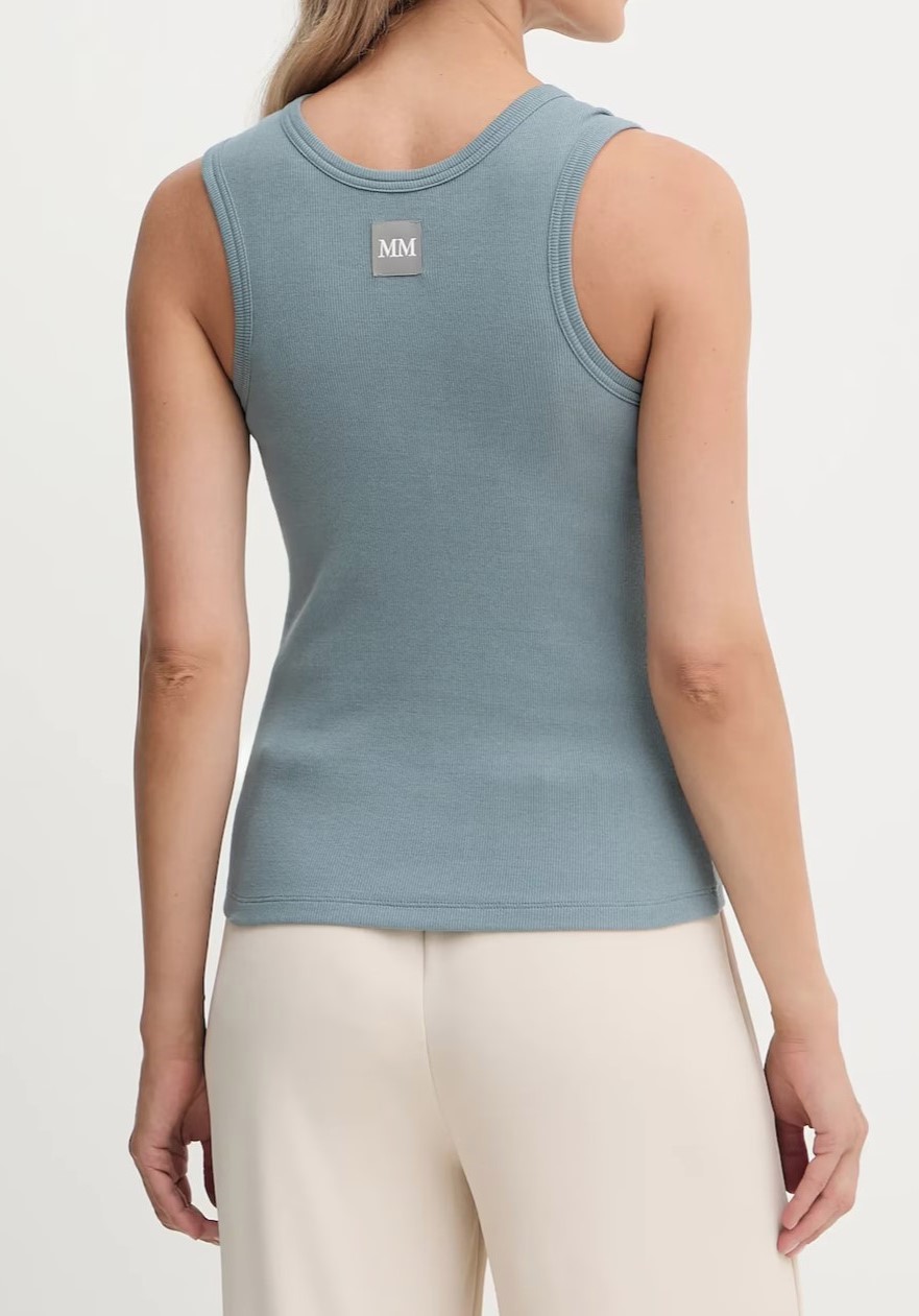 Pelēkzils tops ar logo emblēmu mugurpusē