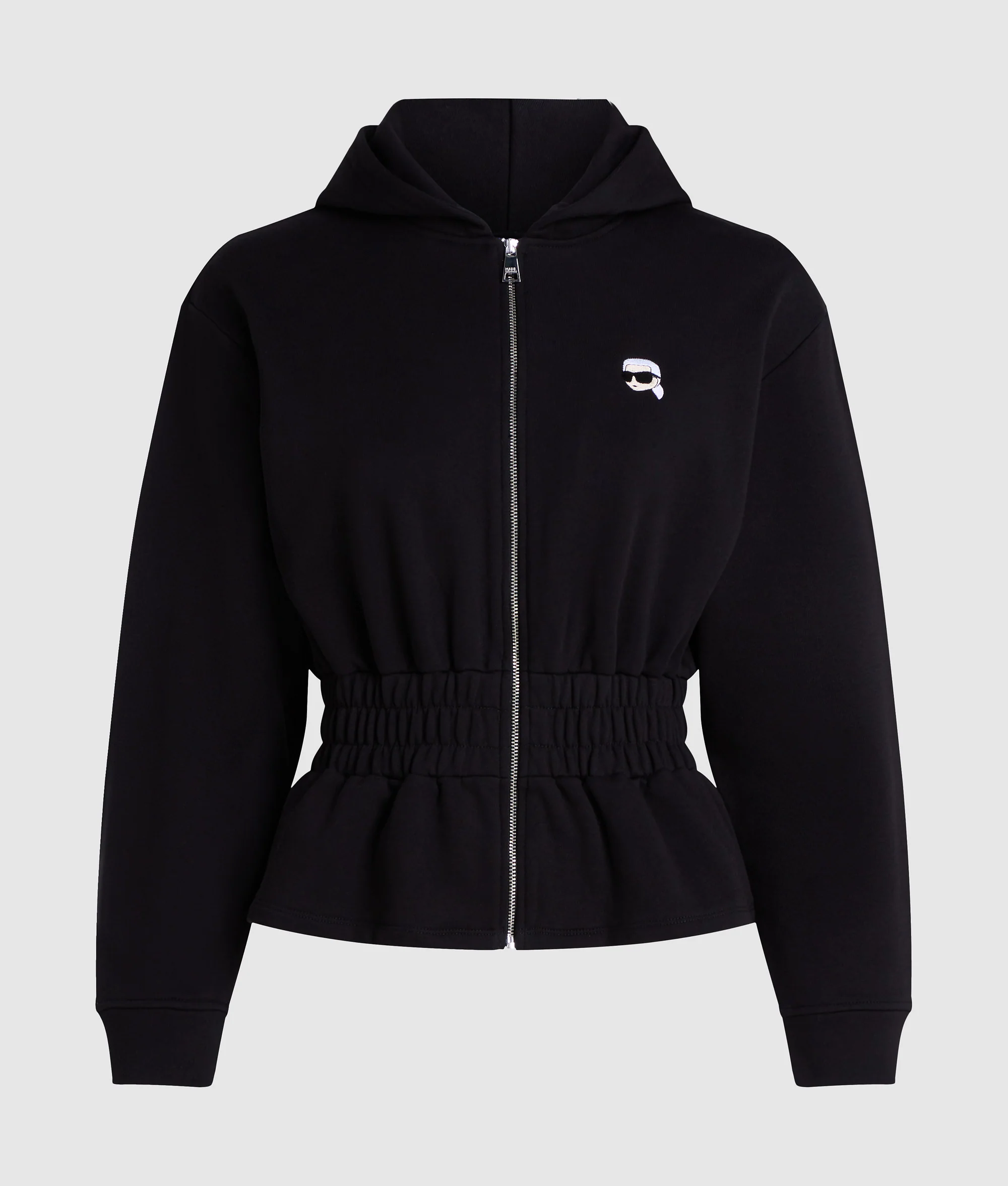 Melna sportiskā stila jaka ar savelkamu apakšmalu