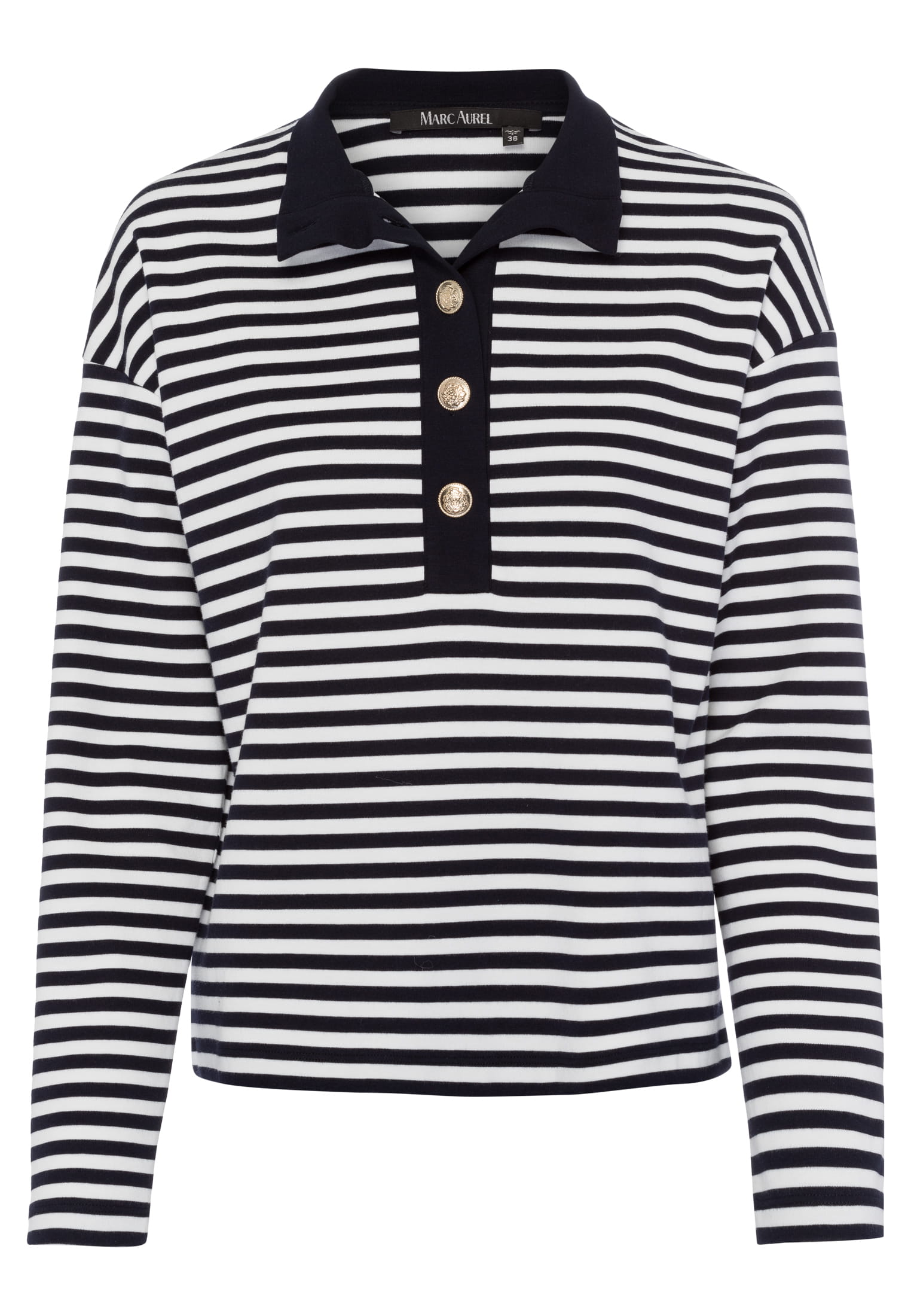 Svītrains tops ar augstu pogājamu apkakli