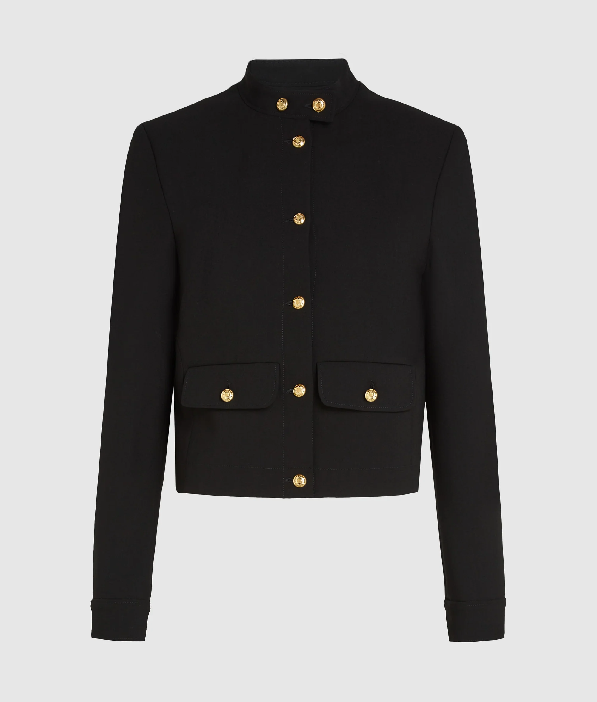 Īsa piegriezuma žakete ar zelta krāsas pogām