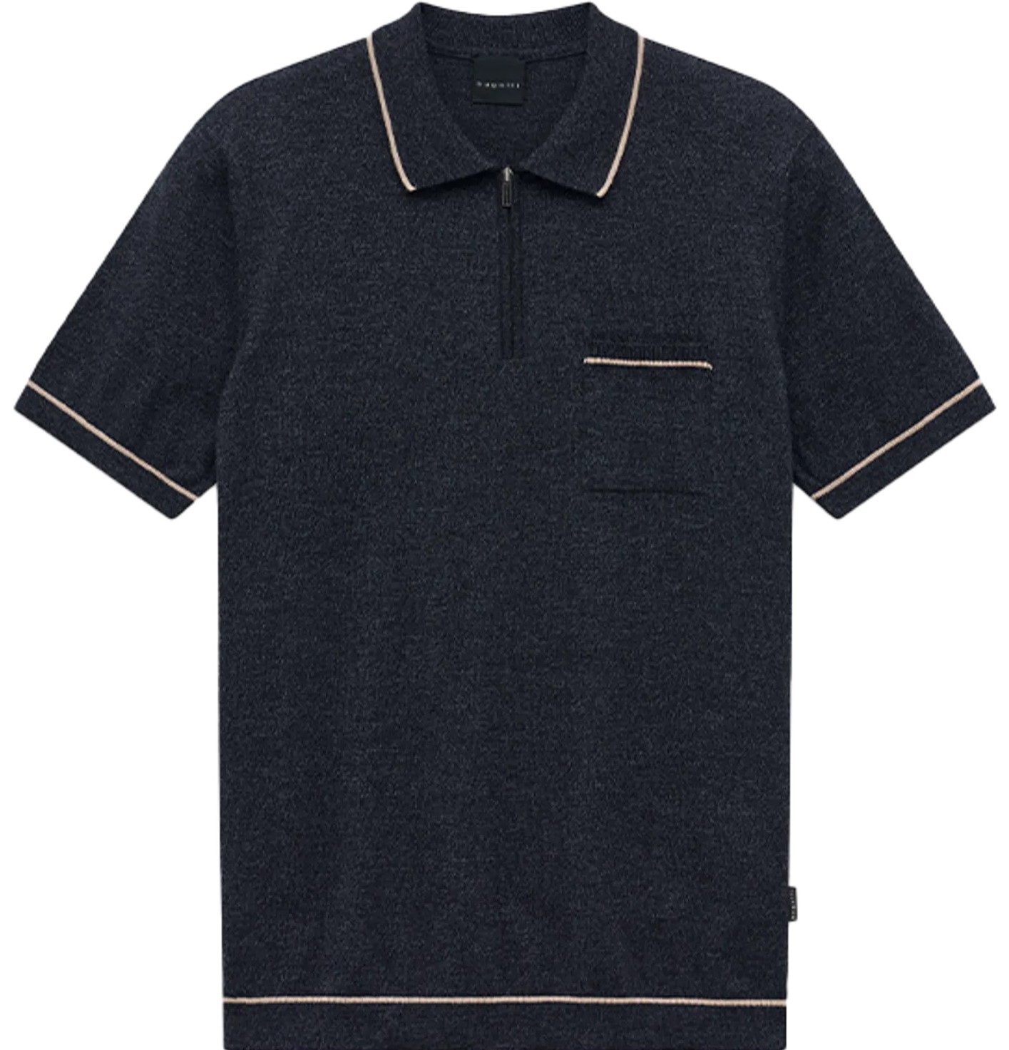 Tumši zils kokvilnas polo krekls ar grafisku struktūru