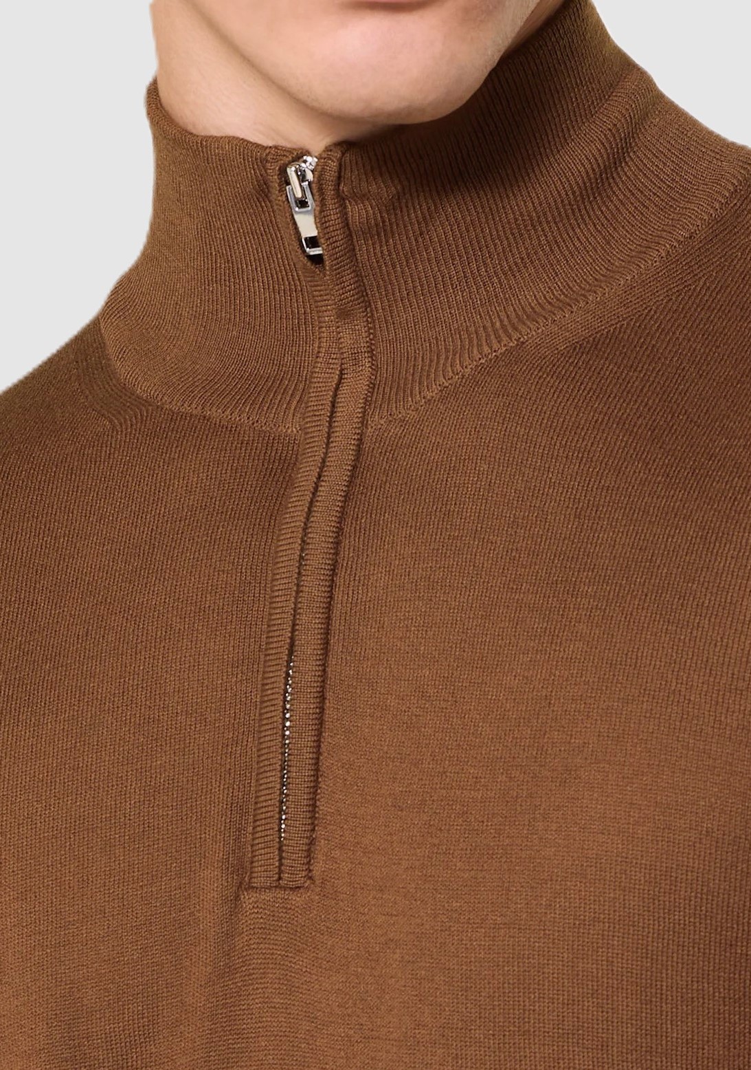 Bēšs rievota adījuma džemperis ar rāvējslēdzēju